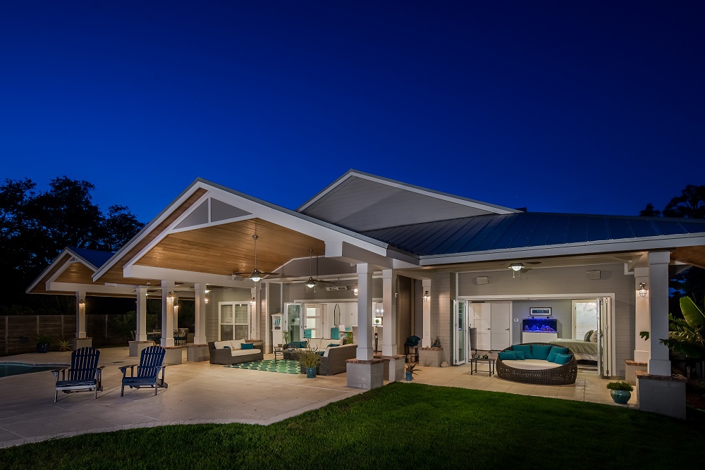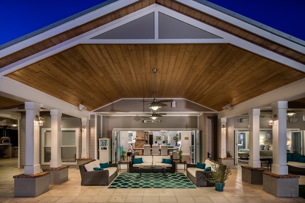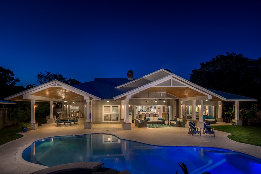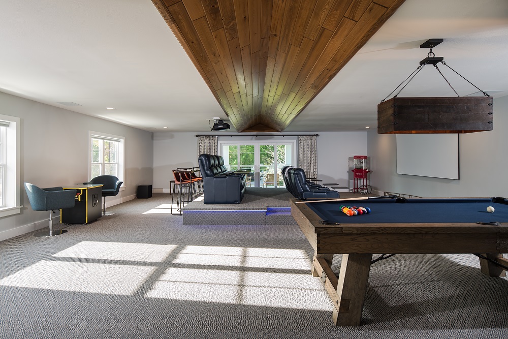 This 1970’s Ranch style home was striped to the bones with only keeping the quarter block wall, and the old Chicago brick fireplace/petition wall. All the back porches, the stair gallery, the theater room and the three car garage were all added to the original home.
